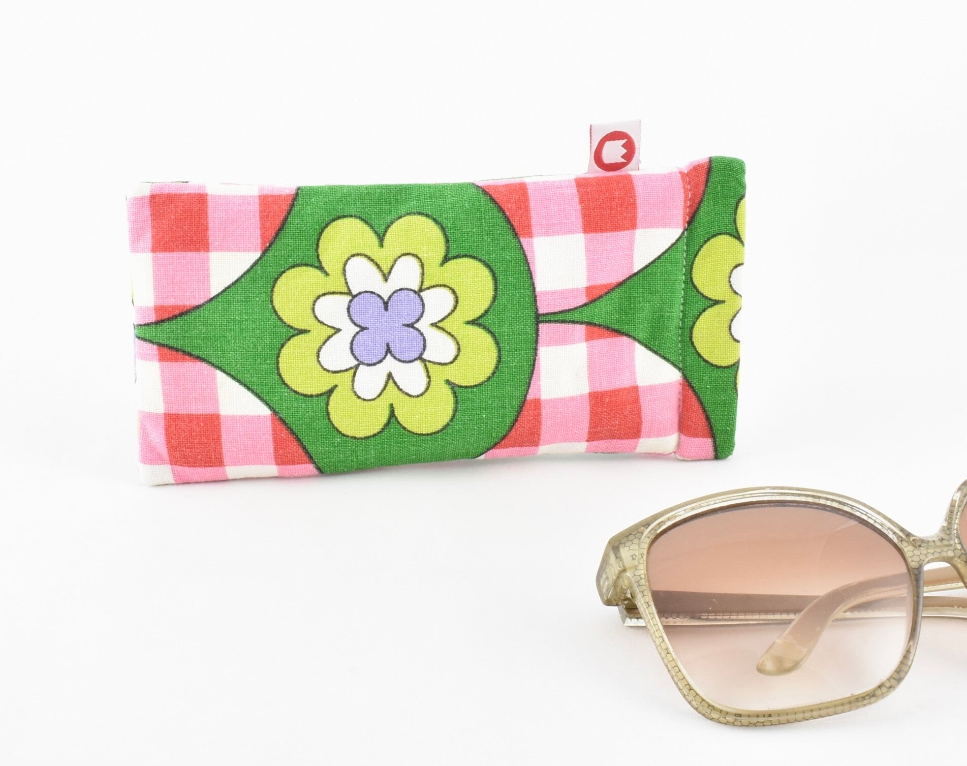 Colorful case with snap closure, sewn from a vintage curtain for your glasses or sunglasses. Inside the case is lined and reinforced with a volume fleece, so that your glasses are protected from scratches.