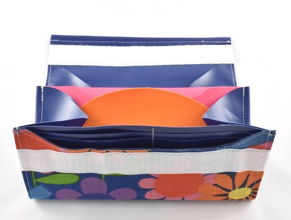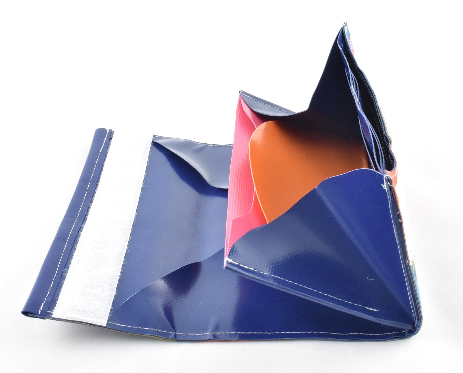 A very practical (and beautiful) wallet. Large compartment for loose change, compartment for driver's license and ID card. Second large compartment for bills and receipts and two spacious compartments for credit cards, bank cards et cetera.