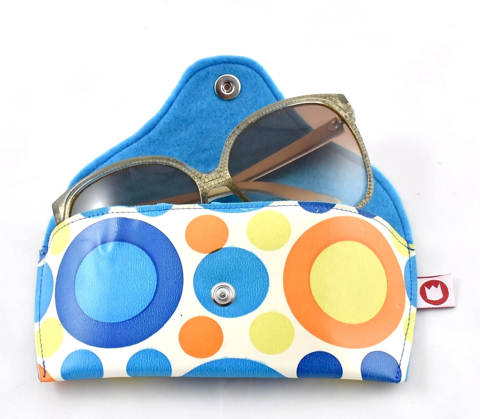 A colorful storage for your glasses or sunglasses. Inside the case is lined with felt. A support provides more stability. Closure: push button.