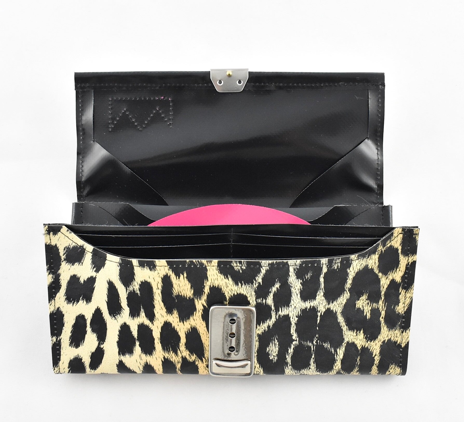 A very practical (and beautiful) wallet. Large compartment for loose change, compartment for driver's license and ID card. Second large compartment for bills and receipts and two spacious compartments for credit cards, bank cards et cetera.