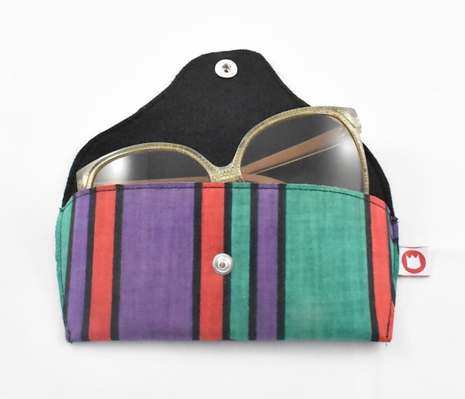 A colorful storage for your glasses or sunglasses. Inside the case is lined with felt. A support provides more stability. Closure: push button.
