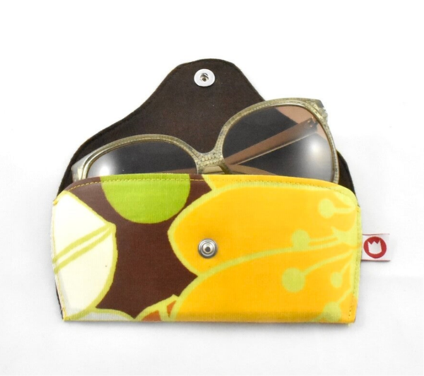 Een mooie etui voor je bril of zonnebril. Van binnen is de etui gevoerd met vilt. Een extra steuntje zorgt voor meer stabiliteit. Sluiting: drukknoop.