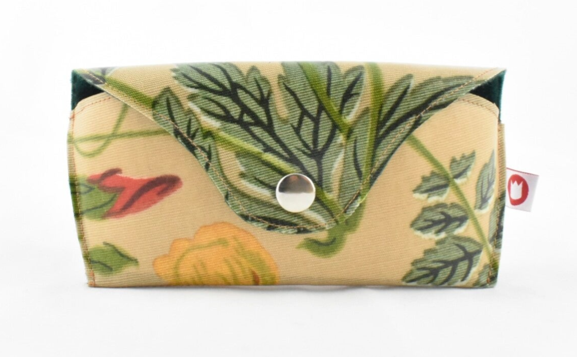 Een mooie etui voor je bril of zonnebril. Van binnen is de etui gevoerd met vilt. Een extra steuntje zorgt voor meer stabiliteit. Sluiting: drukknoop.