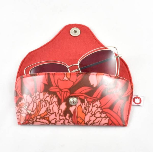 Een mooie etui voor je bril of zonnebril. Van binnen is de etui gevoerd met vilt. Een extra steuntje zorgt voor meer stabiliteit. Sluiting: drukknoop.