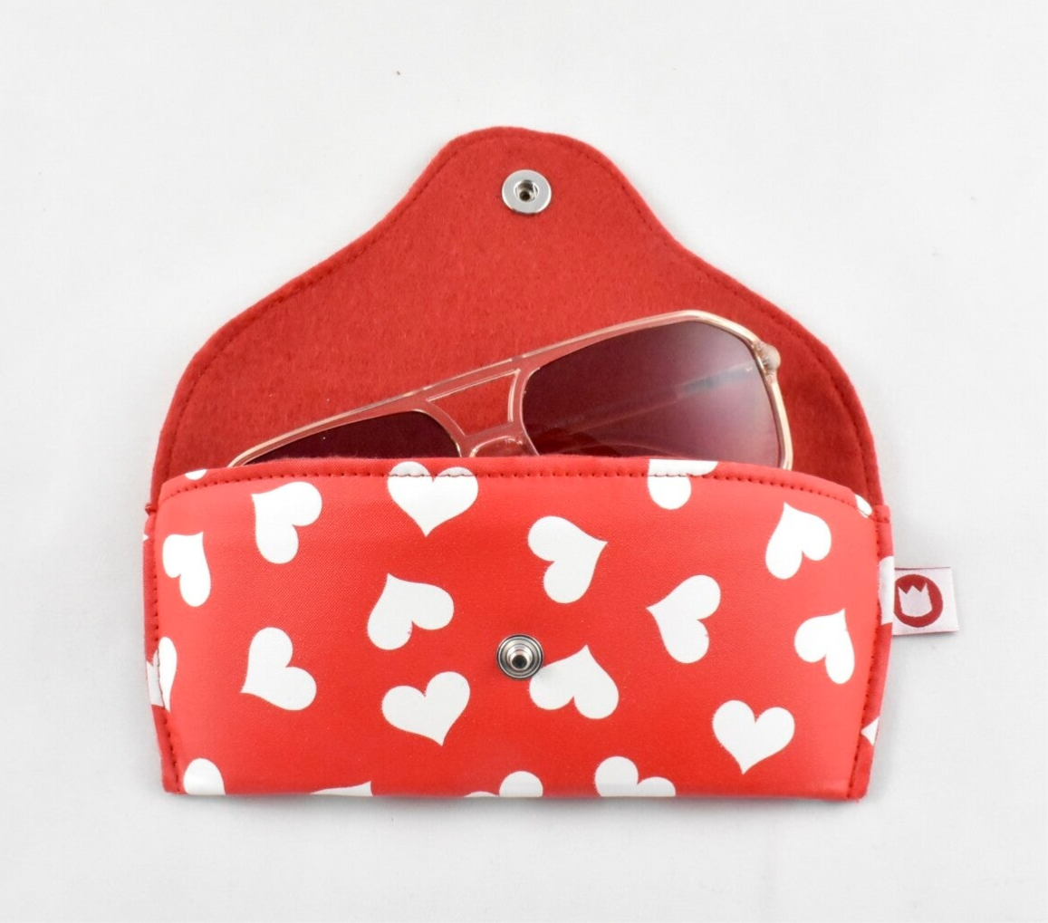 A colorful storage for your glasses or sunglasses. Inside the case is lined with felt. A support provides more stability. Closure: push button.