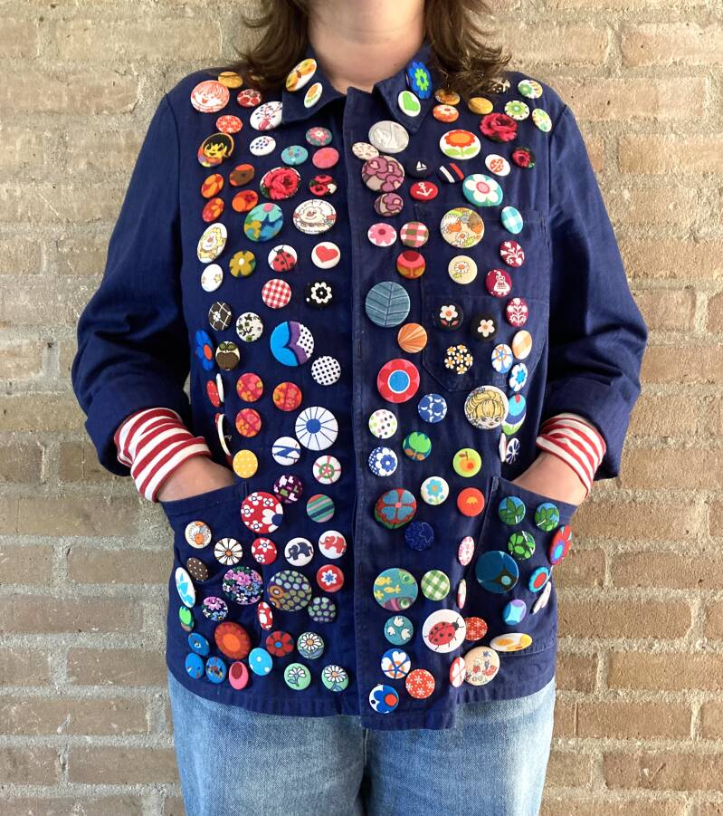 Goldkinder are handmade buttons covered in vintage fabric from the 1950s through the 1970s.